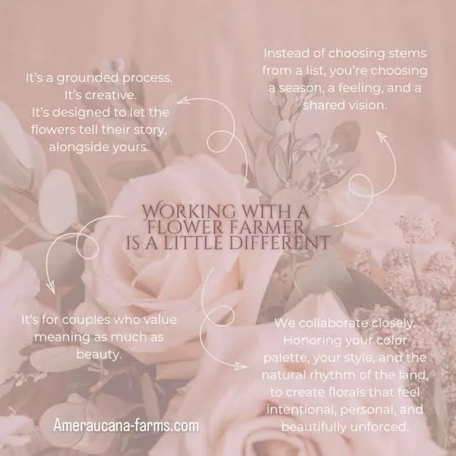 At Ameraucana Farms, our flowers are grown with intention, rooted in the rich soil of our land, and tended with care from seed to bloom. Each stem is cultivated using regenerative and sustainable methods, nourished by clean well water, and free from harmful chemicals. Better for the land, better for your home. We grow with the seasons, offering heirloom varieties, fragrant herbs, and thoughtfully foraged elements that make every arrangement unique and full of life. Most of our seeds, bulbs, and trees are sourced from local farmers and small businesses here in the Pacific Northwest, ensuring our blooms thrive in their native climate. From lush spring tulips and peonies to radiant summer dahlias and autumn textures, our flowers capture the rhythm of the land and the heart of the season. Bring the beauty of the farm into your home, wedding, or gathering, and experience nature’s artistry, grown with care and purpose.
