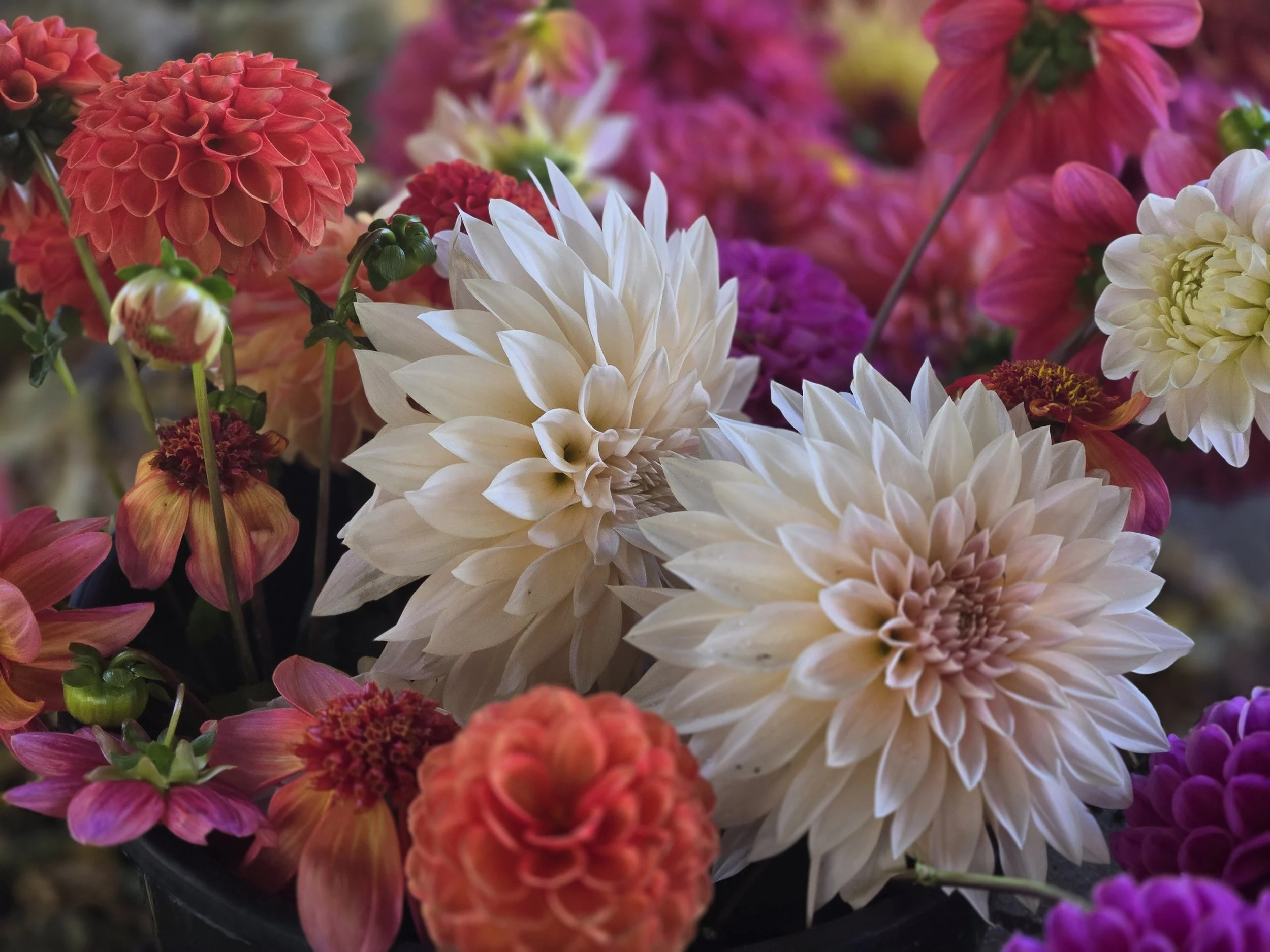 Premium blooms (peonies, garden roses, dahlias) | 20–25 bouquets | ~150 stems | Includes on-site bouquet stylist
